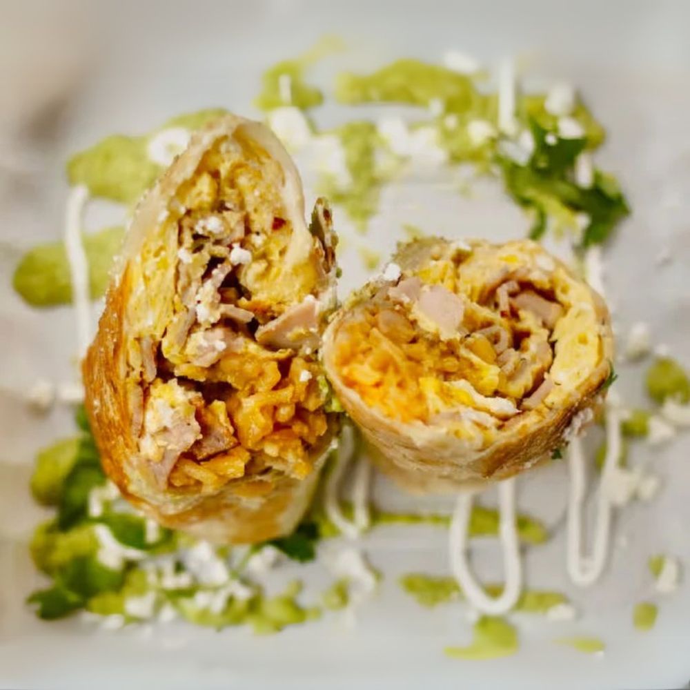 Breakfast burrito with eggs and meat